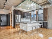 Two units w/ two entrances have been thoughtfully combined to create a spacious 2-bedroom, 3-bath home w addt'l/office flex room. Experience downtown Omaha living in this unique condo near the popular Capitol District. Hardwood floors, 10-foot ceilings, bright living area w informal dining create an open, inviting feel. The stunning kitchen features high-end Café appliances, a large 5x8 island, concrete countertops, 2 wine fridges, and a spacious walk-in pantry. Retreat to the luxurious primary suite inc dual sinks, soaking tub, roomy shower, lrg 14x11 walkin closet. Relax on the private covered 5x20 sunroom, entertain on the rooftop balcony w breath-taking 360 city views. Three secured heated underground parking spaces, and a rooftop balcony with breathtaking 360? city views. Located directly across from the CHI Health Center and just steps from the Holland Performing Arts Center w access to dining, entertainment, the famous Zoo, Lauritzen Gardens, near to the airport. AMA.