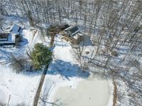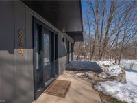 Set on 5.25 scenic acres with a concrete driveway, passing a pond and led to the wooded backdrop, this newly updated contemporary home delivers mid-century modern inspiration with a fresh, modern twist. Clean lines, vaulted ceilings, exposed beams, and expansive windows create a bright, airy atmosphere that feels both stylish and serene. The main level showcases dramatic ceilings, a statement fireplace, and sliding doors that connect seamlessly to a private enclosed balcony, along with an additional set of sliders leading to the expansive rear deck?perfect for enjoying the peaceful, private setting. The fully renovated kitchen features sleek cabinetry, tile backsplash, stainless steel appliances, a coffee bar with floating shelves, and an inviting dining area with direct walk-out access to the large deck, ideal for gatherings. Three spacious bedrooms with generous closets share a beautifully updated full bath complete with dual sinks, dual mirrors, and a tub/shower combination. The spacious primary suite occupies its own private level, offering a walk-in closet, bonus storage, and a spa-like bath with dual vanities and a stunning tiled walk-in shower with rain head. The lower level provides a cozy retreat with a wood-paneled ceiling, fireplace, half bath, and walk-out access to both front and rear patios?perfect for entertaining or simply relaxing in nature. With updated mechanicals, fresh finishes throughout, and a setting that feels like your own secluded escape, this home is a true private oasis blending modern design with timeless mid-century character.