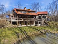 Known as Hickory Haven, this remarkable 14.5-acre energy-resilient homestead estate sits at the end of a ¾-mile private driveway surrounded by mature woods, two ponds, orchard plantings, and scenic walking trails. The Log Plus home is designed for multi-generational living, offering two primary suites on separate levels, four bathrooms, a home office, full walkout basement, and a rare two-room root cellar for food storage. The walkout lower level also includes a home fitness area. The property features a 48-volt photovoltaic solar system with lithium battery storage, inverter management, and generator backup, professionally installed then maintained by Yoder Solar. Portions of the home remain connected to utility power, creating a flexible hybrid energy system. Primary heat is supplied by a Crown Royal outdoor wood/coal furnace (2023) with 20-year warranty, located under a 26??24 covered pavilion with concrete slab and electricity, while a high-efficiency IBC propane boiler provides backup heat and domestic hot water. Water is supplied by a private well with Kinetico Sentry open-air purification, Culligan softener, Pentair pressure tank, and reverse-osmosis drinking stations. Additional features include a barn with chicken coop and fenced run, pasture for livestock, solar-powered Quonset building, beehives, mini orchard with peach, apple and plum trees, two ponds, woodland trails, bird sanctuary area, Softub hot tub, and wraparound deck underplanted with 2 heritage fragrant lilac bushes. The property also includes a dedicated ham radio communications room with professionally installed 2-meter antenna, a small caretaker log cabin near the driveway entrance, and a treehouse with professionally constructed base. A rare opportunity to own a developed private homestead combining independence, natural beauty, and modern infrastructure.