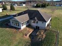 Spacious 2,287 sq. ft. ranch home on 9.58 acres with everything you need for comfortable country living. The main floor offers 3 bedrooms, 2.5 bathrooms, a large master suite with oversized walk-in closet, and an open kitchen/dining area ideal for gathering and entertaining. A large sunroom addition fills the home with natural light, and the paved patio provides a great outdoor space to relax and enjoy the peaceful setting. The partially finished walkout basement includes a second kitchen, full bathroom, and two additional finished rooms currently used as bedrooms, offering plenty of flexibility for guests, recreation. The outdoor features make this property truly stand out, including a fenced 0.5-acre backyard, 40x60 insulated garage with 12-foot ceilings, metal barn building with fenced pasture, newer chicken coop, and a beautiful 1-acre stocked pond. A rare opportunity to own a well-equipped property with room to live, work, and enjoy the outdoors. There is an additional bed/bath in the basement.