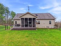 Welcome to peaceful country living in this beautifully crafted custom ranch by Starting Line Homes, perfectly situated on 5.63 scenic acres! Step inside to a welcoming entry/mudroom from the garage with convenient laundry space, designed for everyday living. The home showcases quality craftsmanship throughout with solid wood doors, 9-foot ceilings, and engineered wood flooring. The main living area features soaring cathedral ceilings and a cozy gas fireplace, creating the perfect place to gather and relax. The open-concept kitchen shines with a farmhouse sink, hickory soft-close cabinets, pantry, granite countertops, and a newer dishwasher (2025)?ideal for cooking and entertaining. Just off the living area, enjoy a screened-in porch and composite deck, perfect for morning coffee, relaxing evenings, and taking in the peaceful country views. The primary ensuite offers a private retreat with walk-in closets, double sinks, granite counters, a soaking tub, and walk-in shower. Two additional bedrooms and a full bath are thoughtfully located on the opposite wing of the home, providing privacy for family or guests. The lower level adds even more flexibility with 9-foot ceilings, a full bathroom, and additional living space. Access the basement from two convenient entries?one inside the home and another directly from the garage. The space also includes a workshop area with cabinets (all convey except those under the middle table), utility sink, and plenty of storage. The home is wired for a whole-house generator, features a sediment filter on the well, and the well is approximately 479 feet deep. The furnace was updated in 2026. Step outside to enjoy the fenced backyard area, shed, and firepit?perfect for gatherings under the stars. All power lines are underground, preserving the beautiful open views across the property. If you're looking for acreage, quality craftsmanship, thoughtful design, and space to live, work, and relax, this property is for you.