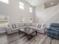 This modern two-story home features an open-concept layout with a 2 story great room showcasing two tiers of windows that provide significant natural light. The main floor utilizes durable wood-look flooring throughout the common areas. The kitchen is designed for functionality and style, featuring White Shaker-style cabinets with sleek gray quartz counters including a large breakfast bar island. A dedicated pantry with a frosted glass door provides plenty of storage space. Eating area with a sliding glass door provides access to the backyard. First floor laundry and half bath complete the first floor. 3 bedrooms with large closets, 2 baths and a loft area complete the second floor. The partially finished lower level boasts a comfortable rec room and large unfinished storage area. Oversized 2 car garage features two 220 electric lines for the electric car charger and future heater if desired. All of this on approx 0.64 acre. Close to shopping and Bike & Hike Trail. Construction was started in 2023 and completed in March 2024