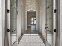 Tucked behind a private, gated courtyard, this 4-bedroom, 3-bath residence welcomes you with a dramatic two-story marble foyer that sets the tone of refined modernity. Graceful arched openings offer a subtle transition, creating definition while maintaining an open flow between spaces. The heart of the home features a painted brick fireplace with a modern, picture-frame wood mantle, flanked by custom-built-ins. The kitchen is a study in contemporary elegance, featuring a marble backsplash, fluted glass pendants, and quartz countertops that complement sleek cabinetry and elevated finishes, making the space both functional and stylish. Just beyond, the dining/ keeping area feels intimate yet spacious, anchored by a domed chandelier with gold accents that lends a soft, sculptural glow. The primary suite is a true retreat. The luxurious primary bathroom features underlit floating wood vanities, illuminated mirrors, & Cristallo Quartzite countertops. The modern freestanding tub & sleek European shower anchor the space, and a floor-to-ceiling textured tile wall complete the serene, artful sanctuary. Each of the three additional bedrooms is spacious and thoughtfully designed, featuring distinctive bathrooms that add character and polish. Pops of green tile, gunmetal fixtures, and unique marble hardware enhance depth and detail in every space. Outdoors, a fully fenced backyard and kitchen create the perfect setting for entertaining or unwinding at home. Dedicated office space. Located within the Estates at Watercross, residents enjoy private boat launch access, lush park space, and a central Covington location close to shopping, dining, and I-12.