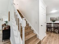 1-Year AHS Home Warranty Included! This beautifully updated 3-bedroom, 2.5-bath home sits on approximately half an acre surrounded by moss-draped oaks in the peaceful Harrietts Bluff community—just 15 minutes from NSB Kings Bay. Step inside to find new LVP flooring throughout the main level and owner’s suite, plus new carpet in the two upstairs bedrooms. The kitchen features chevron-patterned butcher block countertops, a movable island, stainless steel appliances, and cabinetry painted in a warm, woodsy green. A custom walk-in pantry with open stained shelving is both functional and stylish—pretty enough to leave the doors open. Enjoy both a formal dining room and a breakfast nook with a bay window overlooking the backyard. A renovated half bath on the main floor adds guest convenience, while the living room opens through new sliding glass doors to a spacious back deck and fenced yard, perfect for outdoor entertaining. Upstairs, the owner’s suite showcases a tray ceiling, walk-in closet, and a renovated bath with double vanity, tiled shower, slipper tub, and wood-look tile flooring. The guest bath also features a unique tiled shower and matching wood-look tile. Additional highlights include crown molding throughout, a two-car garage with cabinets and laundry hookups, washer and dryer conveying with the property, a tankless water heater, new HVAC, and a metal roof. The freshly sealed garage floors add a clean, finished look. Located in Flood Zone X (no flood insurance required) and outside city limits (no city taxes), this property offers practical value with a serene setting. You’re just minutes from the Harrietts Bluff deep-water boat ramp and less than 10 minutes to Kingsland amenities—including Chick-fil-A! This home blends comfort, convenience, and style—with all the major upgrades compete!