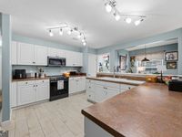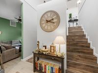 Thoughtfully designed 3-bedroom 2.5-bath POOL home: No carpet throughout and coastal-inspired finishes that make everyday living feel like a retreat. The main level features beachy wood-look tile plank flooring and a welcoming two-story foyer with two coat closets. You'll find a formal living room, a den/office, and a spacious family room open to the kitchen, offering multiple flexible living spaces. A hidden fireplace sits behind the entertainment center. The kitchen is fully equipped with black stainless appliances, including a GE range and microwave, Samsung Wi-Fi smart refrigerator with computer screen in door and Samsung dishwasher. 2 pantries provides extra storage, and the sunny breakfast nook overlooks the swimming pool, making it a favorite daily gathering spot. A powder room completes the main living area. The primary suite is located downstairs and features weathered wood-look vinyl plank flooring, a decorative gold ceiling fan, two walk-in closets, and a beautifully updated ensuite bath. The bathroom includes a double vanity with granite countertops, soft-close drawers and doors, mirrored medicine cabinets, tile shelf, a separate soaking tub, and a tiled walk-in shower with rain head and handheld sprayer. Also on the main level is a large laundry room with a window, shelving, a deep utility sink, and plenty of storage space. Upstairs, two spacious bedrooms sit on opposite sides of the landing with a large bathroom in between, featuring a double vanity and a tub/shower combination. One bedroom offers walk-through access to an oversized walk-in closet, while the other includes attic access through the closet. Ceiling fans are installed in all bedrooms, the den, formal dining room and living room. Step outside to enjoy exceptional outdoor living, including a screened-in porch with ceiling fan, an almost brand new 12x24 in-ground saltwater pool with a 6-foot sun ledge with removable loungers, and surrounding pavers with space for patio furniture and a fire pit. Just beyond the pool is a covered entertainment deck with electricity, ceiling fans, and a honed granite bar with beverage refrigerator. The backyard is fully fenced. Additional highlights include: 2.5-year-NEW roof, rocking chair front porch, epoxy-coated garage floors, built-in garage shelving, two automatic garage door openers, pull-down attic access in garage, no city taxes, and located in X-flood zone (no flood insurance required). Conveniently located with easy access to I-95, approximately 30 minutes to Jacksonville International Airport, and about 5 miles from the public boat ramp at Harrietts Bluff Village.