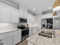Nestled in the picturesque Laurel Island Community, this exquisite 3-bedroom, 2-bathroom home offers an exceptional blend of style and functionality. The heart of the home is a large kitchen featuring a substantial island, custom cabinets, and both recessed and under-cabinet lighting that illuminate elegant granite countertops. The kitchen has upgraded stainless steel appliances and the custom-tiled backsplash, while the expansive walk-in pantry with wooden shelves ensures ample storage. The master suite is a sanctuary, boasting a 6-foot walk-in tiled shower, a luxurious 6-foot soaking tub, double vanities, and an over sized closet equipped with custom wooden shelving. Practicality meets sophistication with a whole-house Culligan water filtration system, including reverse osmosis, ensuring pristine water quality. Relax on the screened-in porch with roll-up shades. Enjoy the convenience of a two-car garage finished with T1-11, offering additional storage space above. With a sprinkler system and lawn care included, this home, located on a tranquil cul-de-sac, promises a low-maintenance lifestyle. Notably, no pets have ever resided in this meticulously maintained residence.